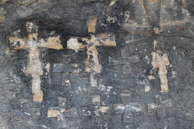 Kilisenin genel anlamda 2 ayrı kaya mezarın birleştirilmesi sonucu oluştuğu bilgisini veren Özkaya, duvar işçiliğinde farklı dönemleri yansıtması açısından da önem arz ettiğini, bölgede daha önce yaşamış ve yaşamaya devam eden Hristiyan azınlıkları sembolize eden haçların duvarda bulunduğunu söyledi.