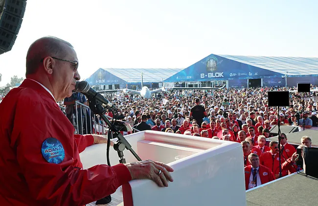 İnşallah çok daha iyi yerlerde olacağız. TB2’lerle yakaladığımız, AKINCI ile sürdürdüğümüz ivmeyi, insanız savaş uçağımız KIZILELMA ile çok farklı bir seviyeye taşıyacağız. Şu hakikati lütfen aklınızdan çıkarmayınız… Adanalı kardeşlerimiz “Elle gelen öğün olmaz, o da arasan bulunmaz” atasözünü çok iyi bilir. Biz de savunma sanayii alanı başta olmak üzere dışa bağımlılığın acısını çok iyi bilen bir ülkeyiz.