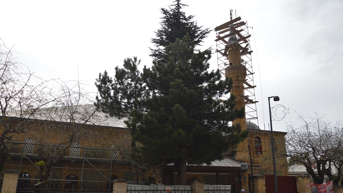 CAMİ MİNARESİNDEN DÜŞEN PARÇADAN KAÇAMADI