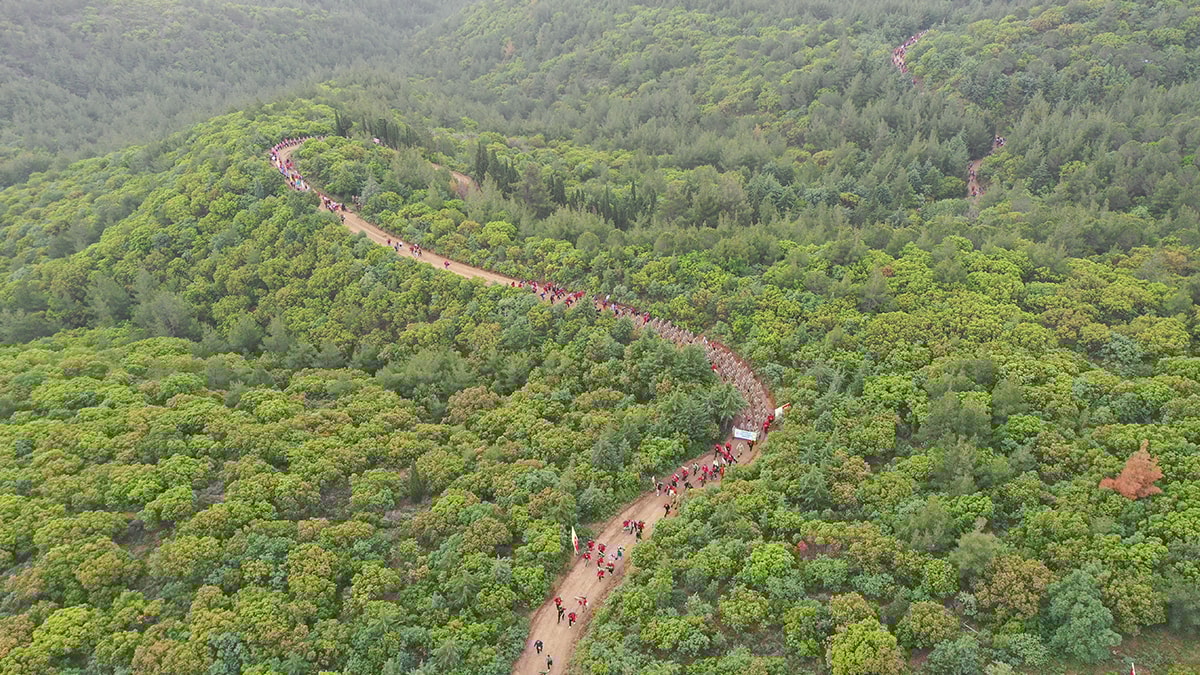 Subaşı, “57. Alay’ın ihtiyat birliği olarak karargah kurduğu noktada ve aynı bu şekilde 109 yıl önce yürüyüşe başladığı noktadayız. Sabah namazı saati silah sesleri ve ezan sesleri içinde izcilerimiz çadırlarından kalkıyorlar. Asker çorbası içip hamur kızartması yiyerek dedelerinin yürüdüğü yolda aynı şekilde Conkbayırı’na yürüyorlar. Büyük bir gururla 57. Alay topraklarında 57. Alay’ın izinde ‘dedeciğim ben geldim’ diyerek yola çıkıyoruz” ifadesini kullandı.
