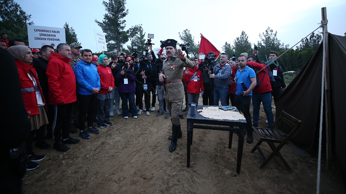 Yürüyüş boyunca, gençlerin Çanakkale Savaşları sırasında dedelerinin yaşadıklarını daha iyi hissedebilmeleri, o duyguyu yaşayabilmeleri için ses ve sis fişekleri atıldı. Bazı gençler de savaşı canlandırdılar. Yaklaşık 5 kilometrelik yürüyüş Conkbayırı’nda sona erdi.