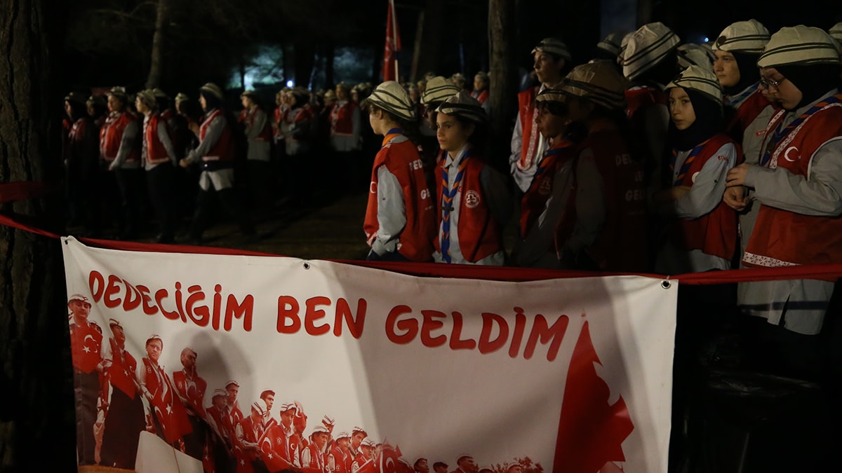 Diğer yandan Türkiye İzcilik Federasyonu tarafından düzenlenen 57. Alay Şehitlerini Anma Milli Bilinç Kampı kapsamında saçlarına kına yakılan ve asker çorbası içen 2 bin 500 izci, 57. Alay’ın 109 yıl önce yürüdüğü yolda atalarını andı.