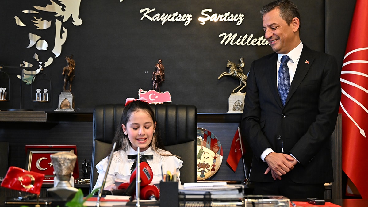 CHP Genel Başkanı Özgür Özel, makam koltuğunu 5’inci sınıf öğrencisi Dora Mimaroğlu’na (11) devrederek, “Buyurun Sayın Genel Başkanım, koltuk sizin. Biraz isterseniz sırtınızı dayayın. Bu koltukta, böyle iyice yerleşmezseniz kaldırabilirler sonra” dedi.